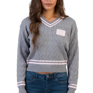 SISSYBOY/SWEATER GREY MELANGE/PINK ALL IN KNIT V-NECK T33028