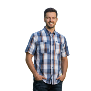WILDEBEES/SHIRT NAVY WHITE STONE BLUE WMA087 CHECK