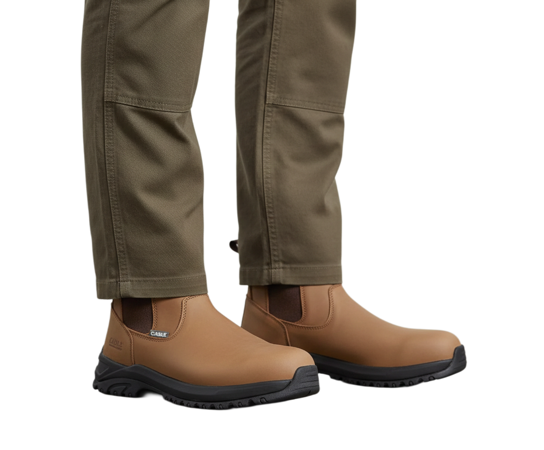 A rugged, leather upper safety boot designed for reliable toe protection in demanding work environments. Built for comfort and durability.