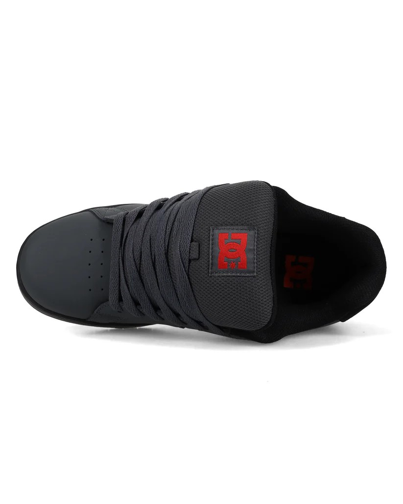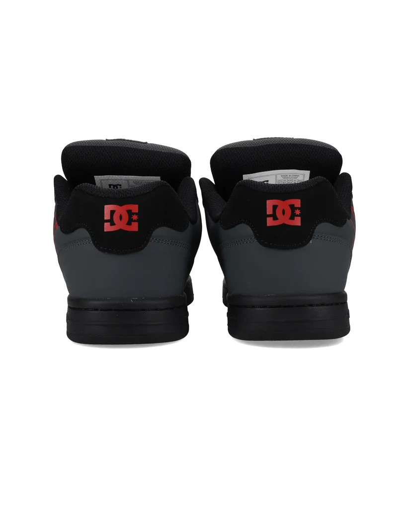 Accents: It features bold vibrant red detailing, including the large outlined DC logo on the side panel and the branding on the tongue.
