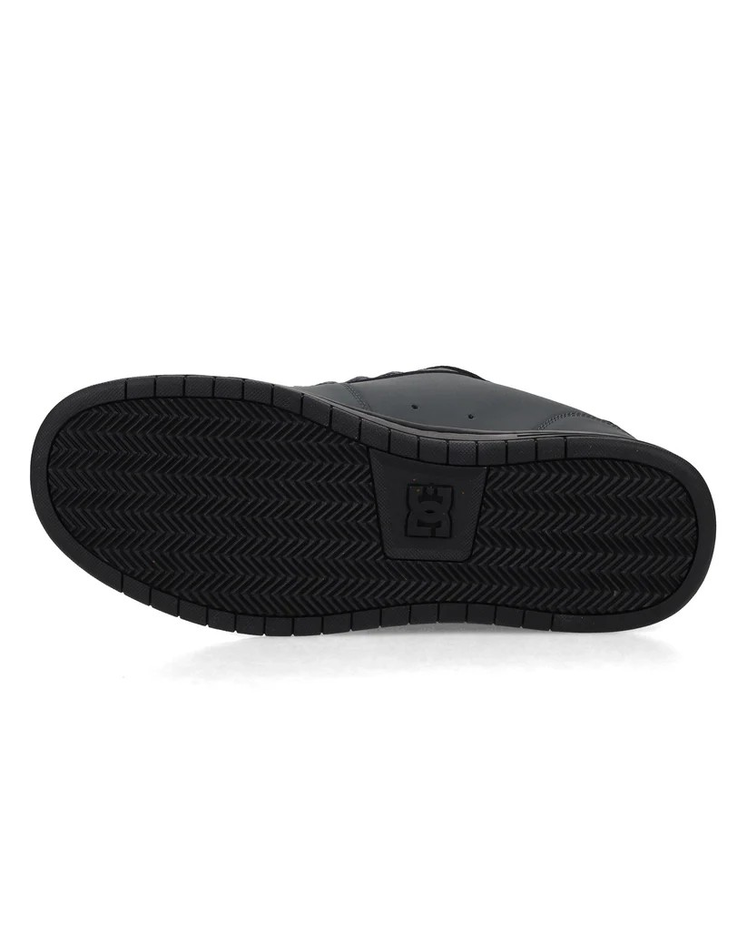 Primary Color: The upper is primarily a dark charcoal or slate gray, likely made of a durable synthetic or leather material.