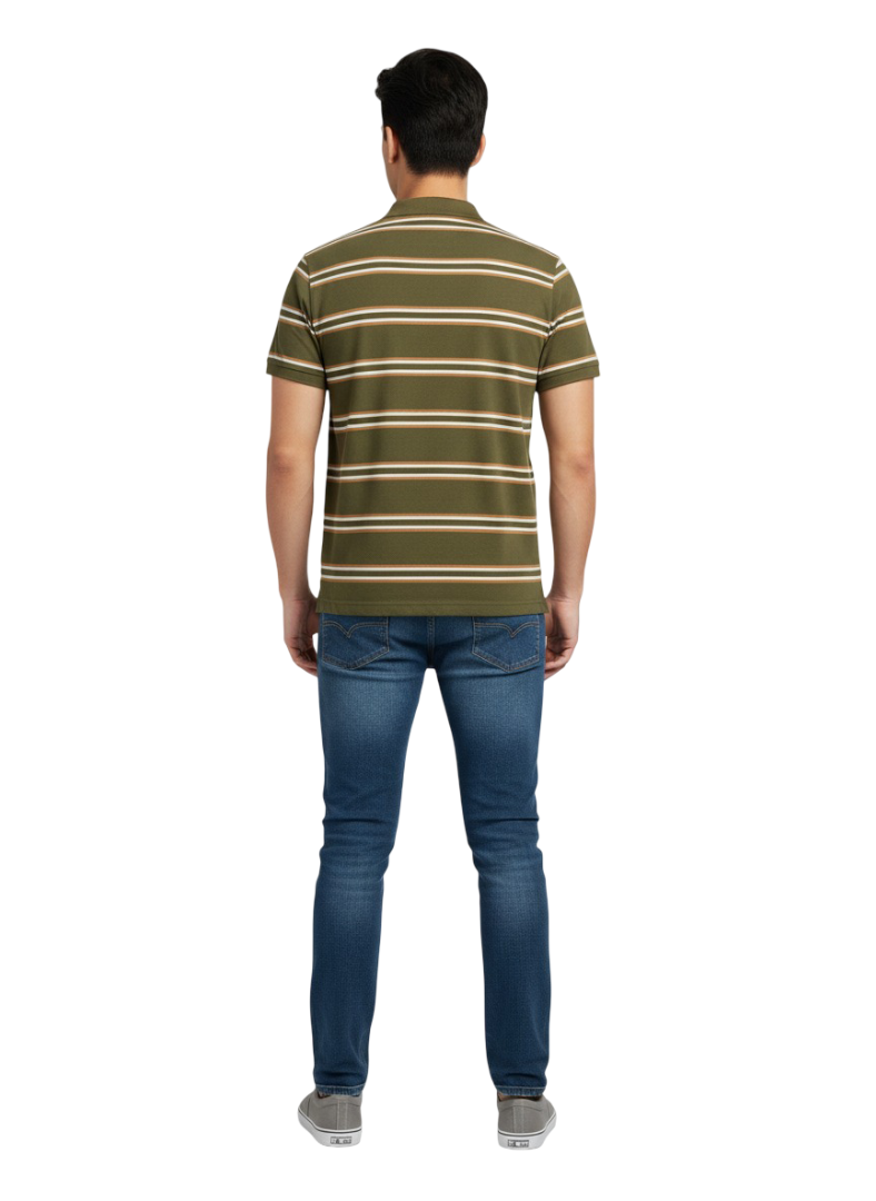 Classic fit golfer shirt in a yarn dyed single jersey stripe with a chest pocket and tonal Jeep branding.