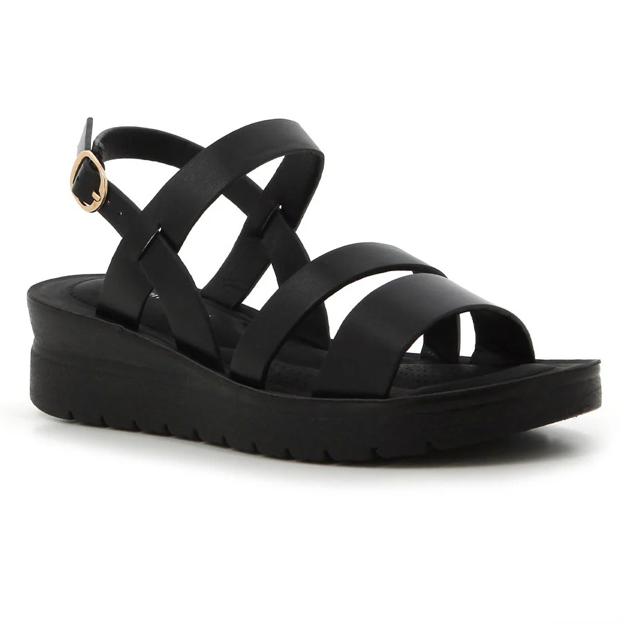 The Pierre Cardin LYA Black Wedge Sandals (PCL10800) are stylish, black wedge sandals available in multiple sizes, combining modern design with the brand’s renowned craftsmanship