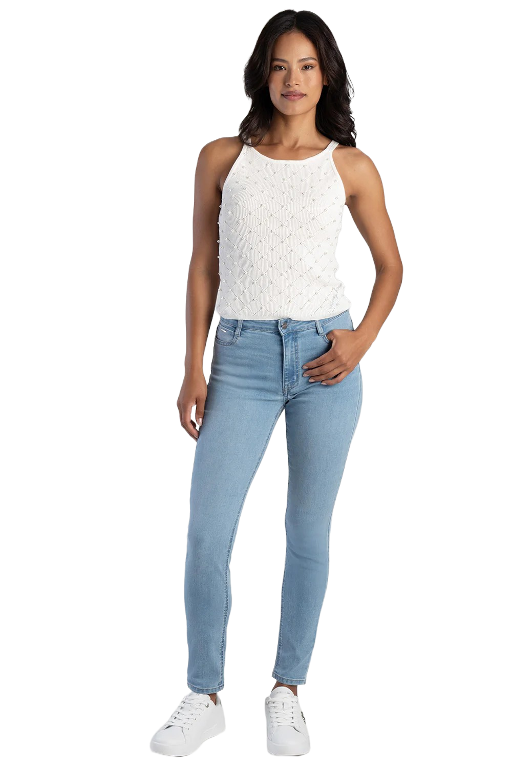 Renee is a mid-waist skinny jean crafted from denim that sculpts and moves with you. Designed to accentuate curves, it features bum-boosting back pockets and a sleek, smooth finish. Perfect for any occasions and is truly a classic skinny style.