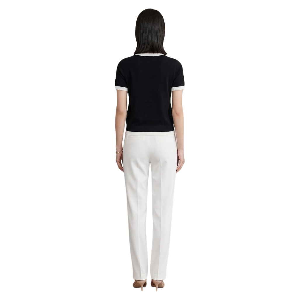 Introducing the “Sissy Boy New Obsession Knit Short Sleeve Top” in classic black—a must-have for the modern woman’s wardrobe. Crafted with precision, this elegant knit tee combines comfort and sophistication effortlessly. The striking contrast of the black fabric with white trim adds a touch of timeless grace, while the subtle brand emblem at the chest sets it apart, adding a hint of luxe to your everyday style. Perfect for any occasion, this versatile top transitions seamlessly from day to night. Pair with tailored trousers for a polished office look, or team with your favourite jeans for a chic and casual ensemble