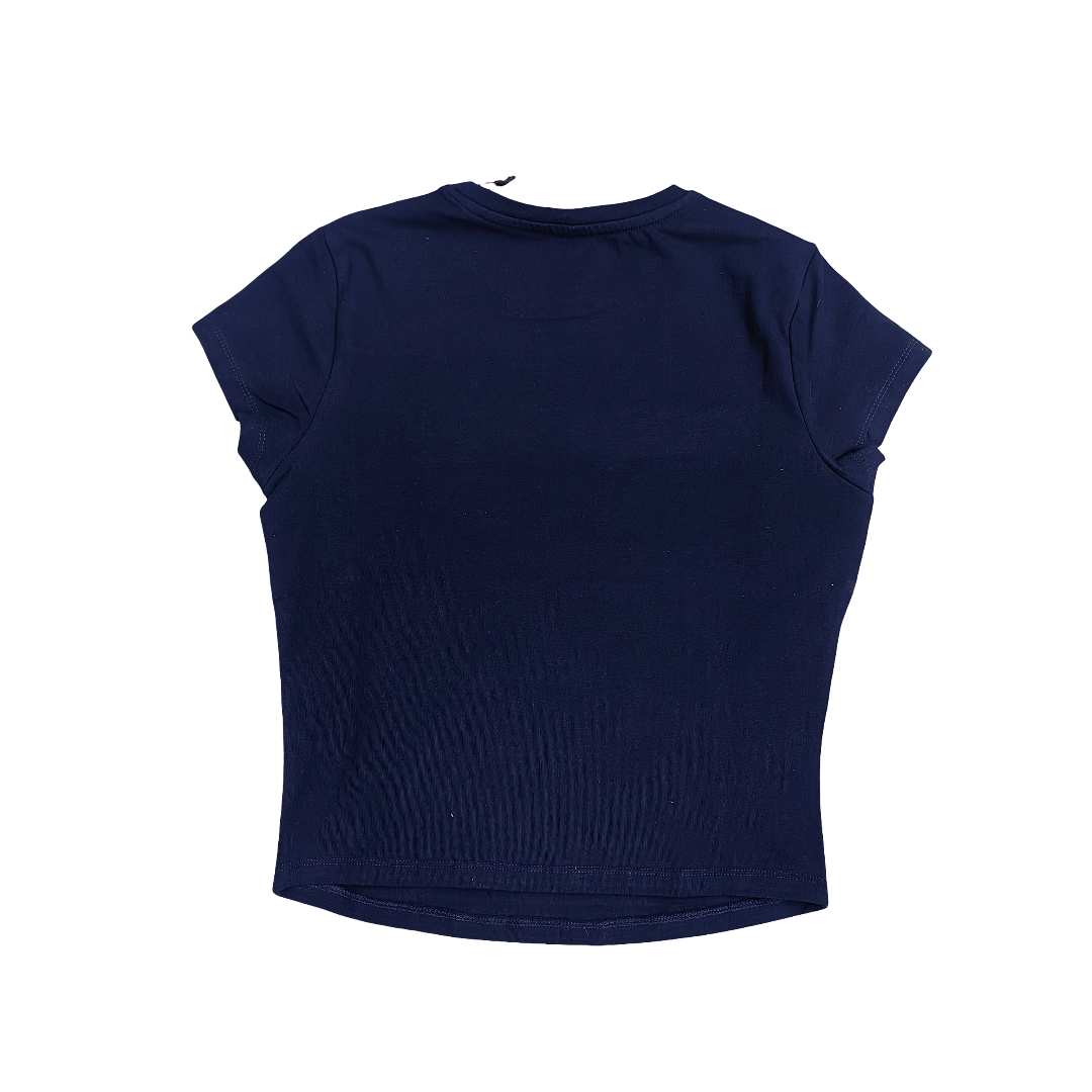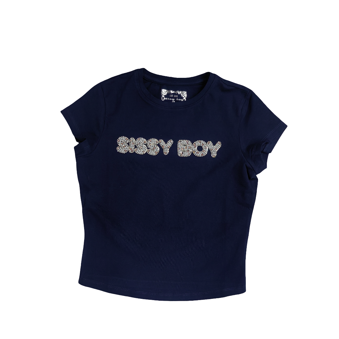 The SISSYBOY T32850 Navy T-shirt features a stylish navy base with a pink and pearl-embellished logo transfer, combining effortless comfort with a touch of sparkle for a chic, versatile everyday look.