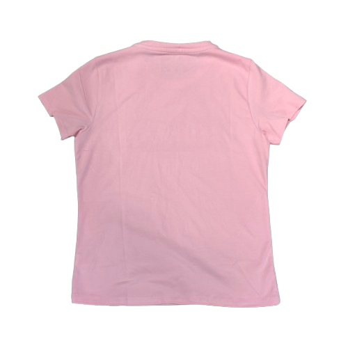 The SISSYBOY Pale Pink T-shirt T32846 is a casual, feminine top featuring a soft pale pink hue, short sleeves, a round neckline, and delicate lace detailing, crafted from a comfortable polyester blend.