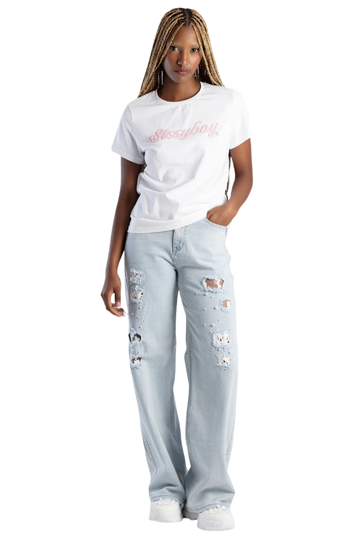 SISSYBOY/TSHIRT WHITE T32841 PINK BEADED LOGO