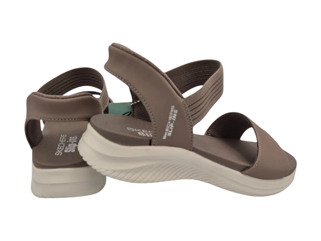 Enjoy sunny days in breezy comfort with Skechers Hands Free Slip-ins®: Ultra Flex 3.0 – Summerville. Designed with Skechers Heel Pillow™, this slingback sandal features a synthetic and stretch fabric strap upper with a cushioned Yoga Foam® footbed