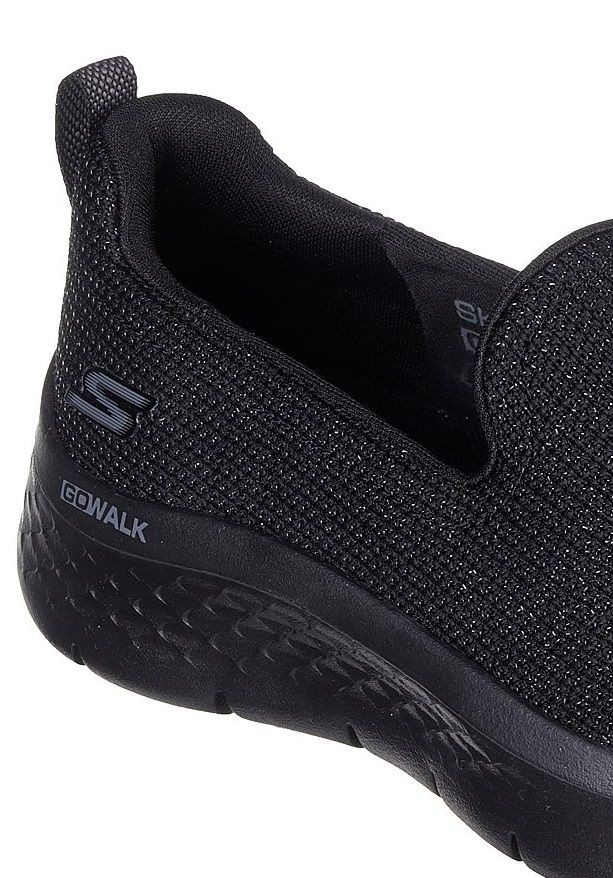 Enjoy airy cushioning with flexible appeal wearing Skechers GO WALK Flex. This slip-on features a sparkle mesh upper with a breathable Skechers Air-Cooled Goga Mat insole, lightweight ULTRA GO cushioning and Flex Pillars for added support.