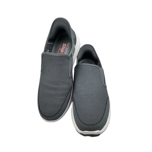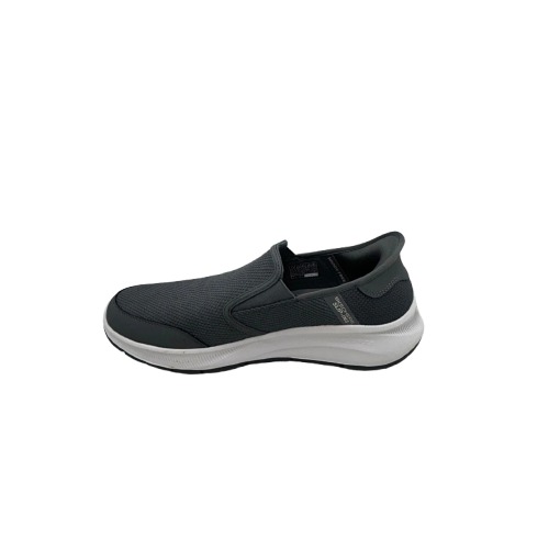 The SKECHERS 232926 Charcoal Equalizer 5.0 is a convenient, hands-free slip-on shoe with a breathable mesh upper, cushioned air-cooled memory foam insole, and a relaxed fit perfect for daily wear. Its sleek charcoal color and laceless design make it stylish and versatile for both casual and semi-casual looks, while synthetic trim adds durability and sporty flair. Comfort is enhanced with Relaxed Fit® for extra room, Heel Pillow® technology to support the heel, and an air-cooled memory foam insole for breathability and impact absorption. The lightweight mesh and synthetic materials keep it flexible and airy, and its slip-on style makes it easy to wear for errands, casual outings, or light activities.