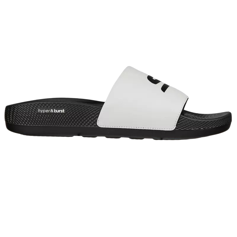 Post-run recovery gets upgraded with more comfort and athletic style in the Skechers Hyper Slide – Deriver sandal. Features a smooth synthetic upper with HYPER BURST cushioned midsole and Goodyear performance outsole.