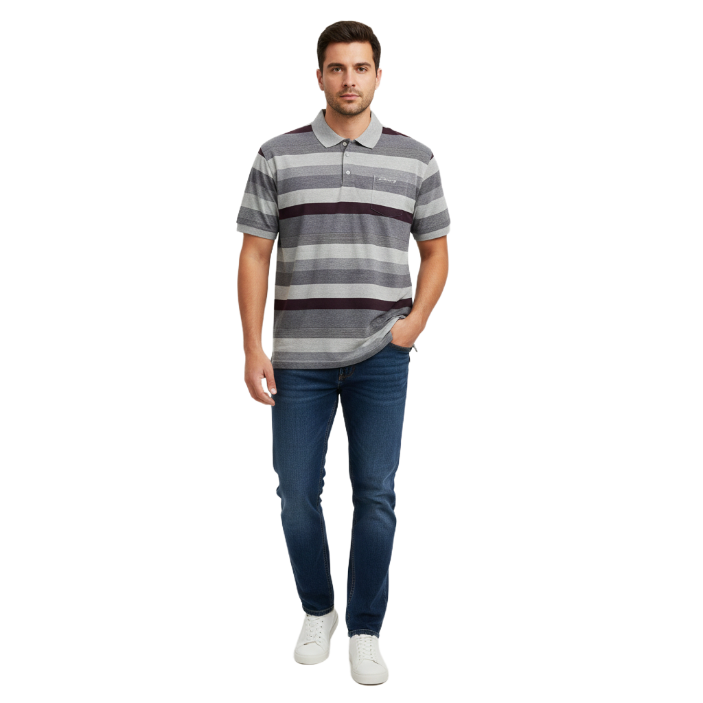 Mens Sterling Stripe Yarn Dyed Golf T Shirt Grey/Black