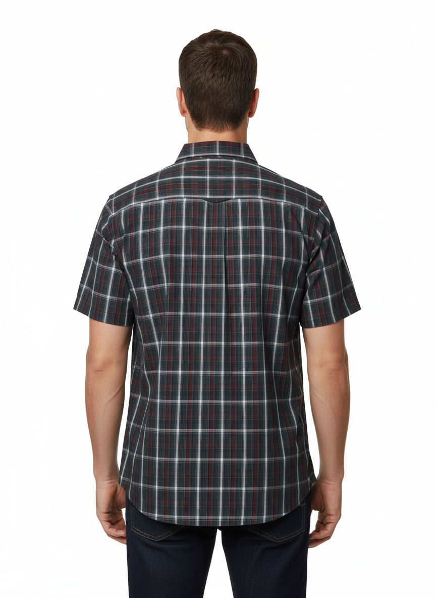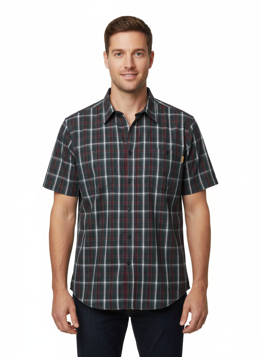 Sterling Two Pocket SS Cotton Check Shirt (Style 3193019). This shirt features a check pattern with black, blue, and red colors