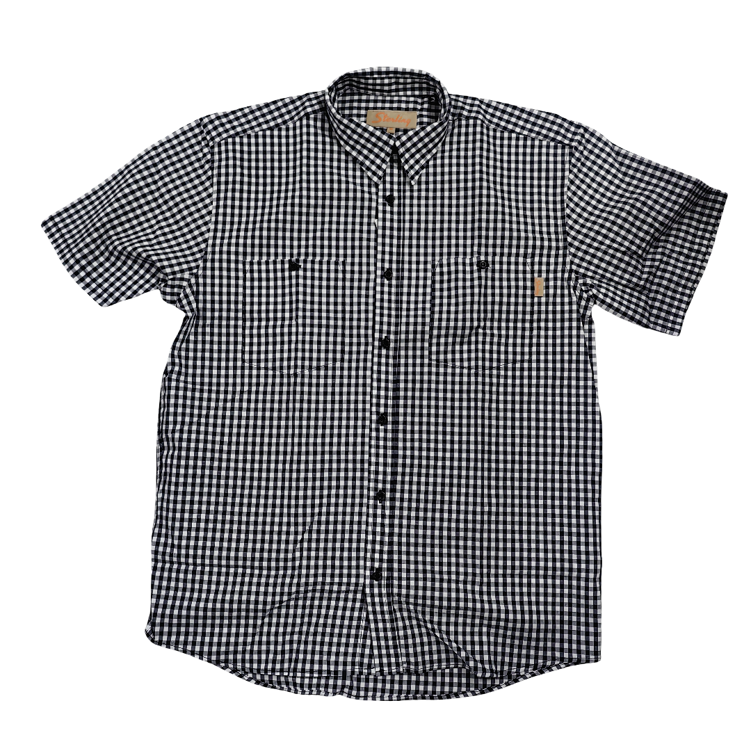 The Sterling Check Shirt in Navy/White is a short-sleeve cotton check shirt featuring a classic two-pocket design, made from durable and breathable fabric 1149.