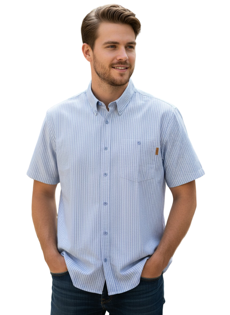 A classic button-up shirt in refined light blue and white stripes with a single chest pocket and clean lines. Crafted for everyday wear and smart-casual occasions, it pairs easily with chinos or jeans. Designed for comfort and polished everyday style.