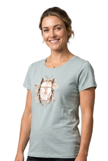 WILDEBEES/LADY TSHIRT AQUA MIST WLA320 PORCELAIN BUG