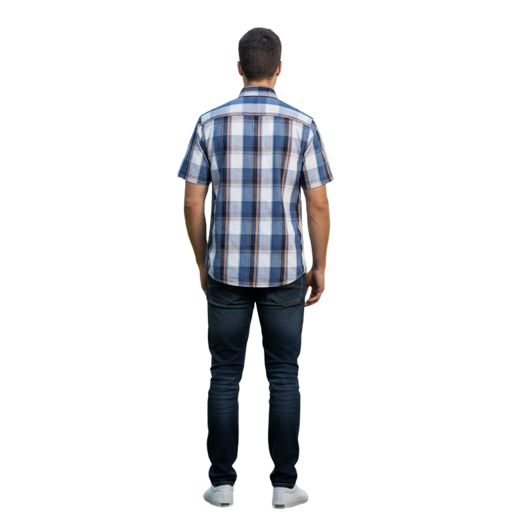 WILDEBEES/SHIRT NAVY PETROL ORANGE WHITE WMA086 CHECK