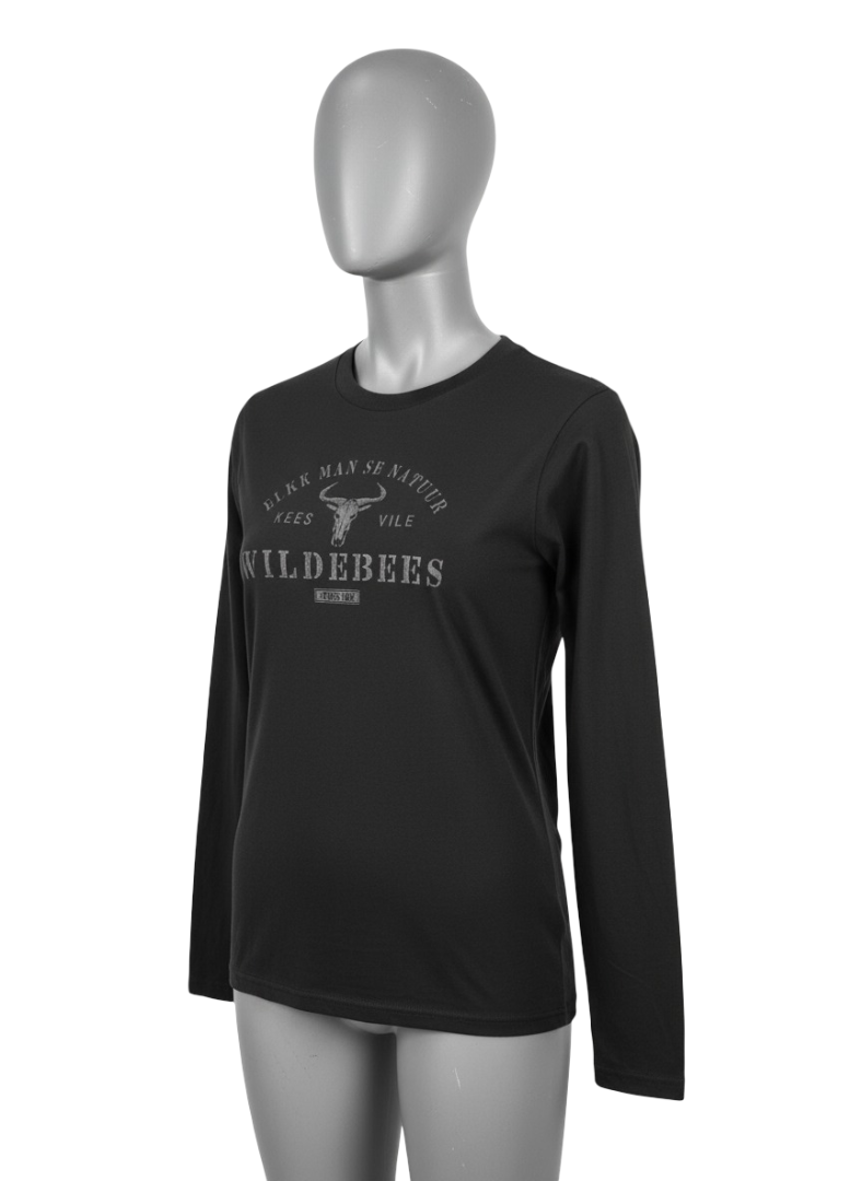 WILDEBEES/TSHIRT L/SLV STENCIL EMB PEWTER