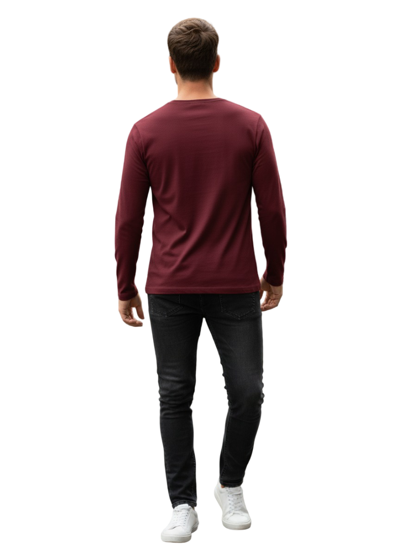 This men’s t-shirt is made of a 100% Cotton material and has no pockets. It is a simple t-shirt without a collar. It has a straight bottom, it is not curved so it is not ideal for tucking in. The shirt has some branding tags on the side. The back of the shirt is plain and it’s a simple fit.