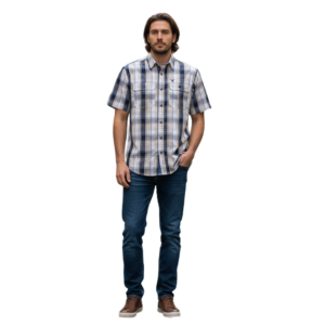 WILDEBEES/SHIRT NAVY WHITE STONE BLUE WMA087 CHECK