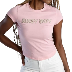 SISSYBOY/TSHIRT PALE PINK T32579 WITH PEARL AND BLING LOGO